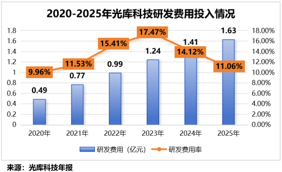 与此同期,公司发轫了大畛域的研发资金参预。2020-2025年,公司研发用度从0.49亿元攀升至1.63亿元,时分累计参预6.53亿元,研发用度率也长期看守在10%以上。