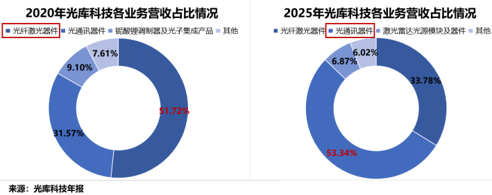 从营收结构看,2025年,公司光通讯器件业求收场营收7.86亿元,占总营收的53.34%,初次超过光纤激光器件业务,成为第一大营收开首。